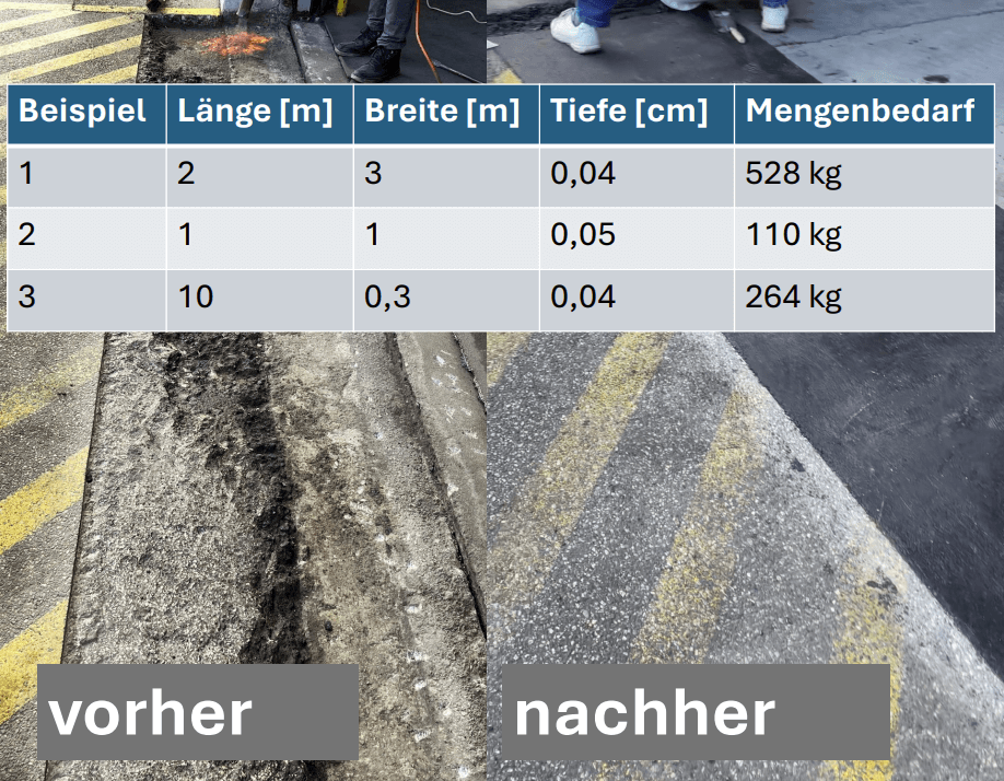 mix4phalt® ist ein schnellaushärtendes, flexibilisiertes, universell einsetzbares Mörtelsystem auf PMMA-Basis mit speziellen Additiven und abgestufter Sieblinie mit einem Größtkorn von 4 mm. Das Produkt ist nicht „auf 0“ bzw. auf die Korngröße ausziehbar.